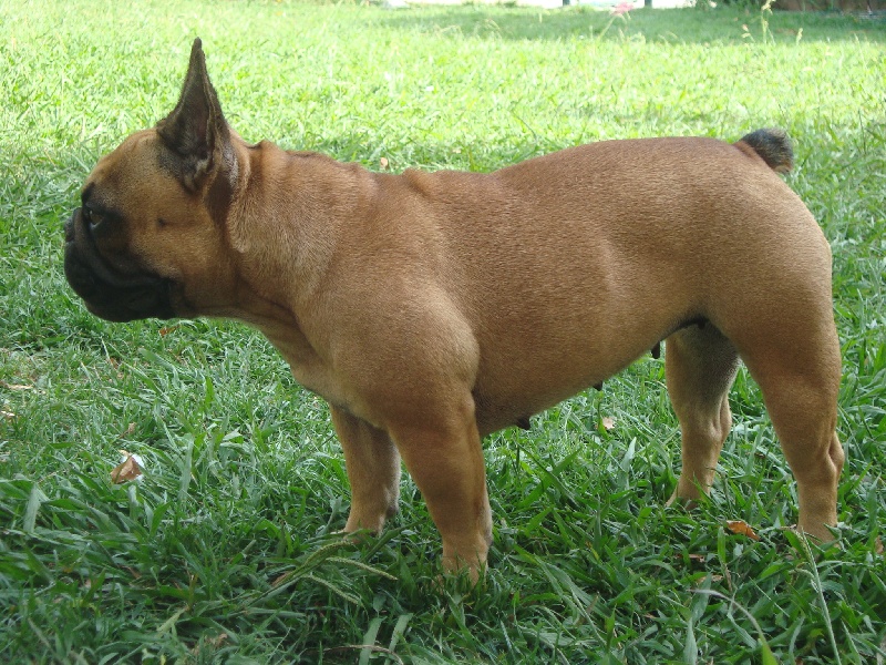 Robe fauve soutenu - Exc. crâne - Ex.pigmentation, port d'oreille - Pieds de chat avec ongles noirs - Queue très bien placée - Serre un peu à l'arriére.